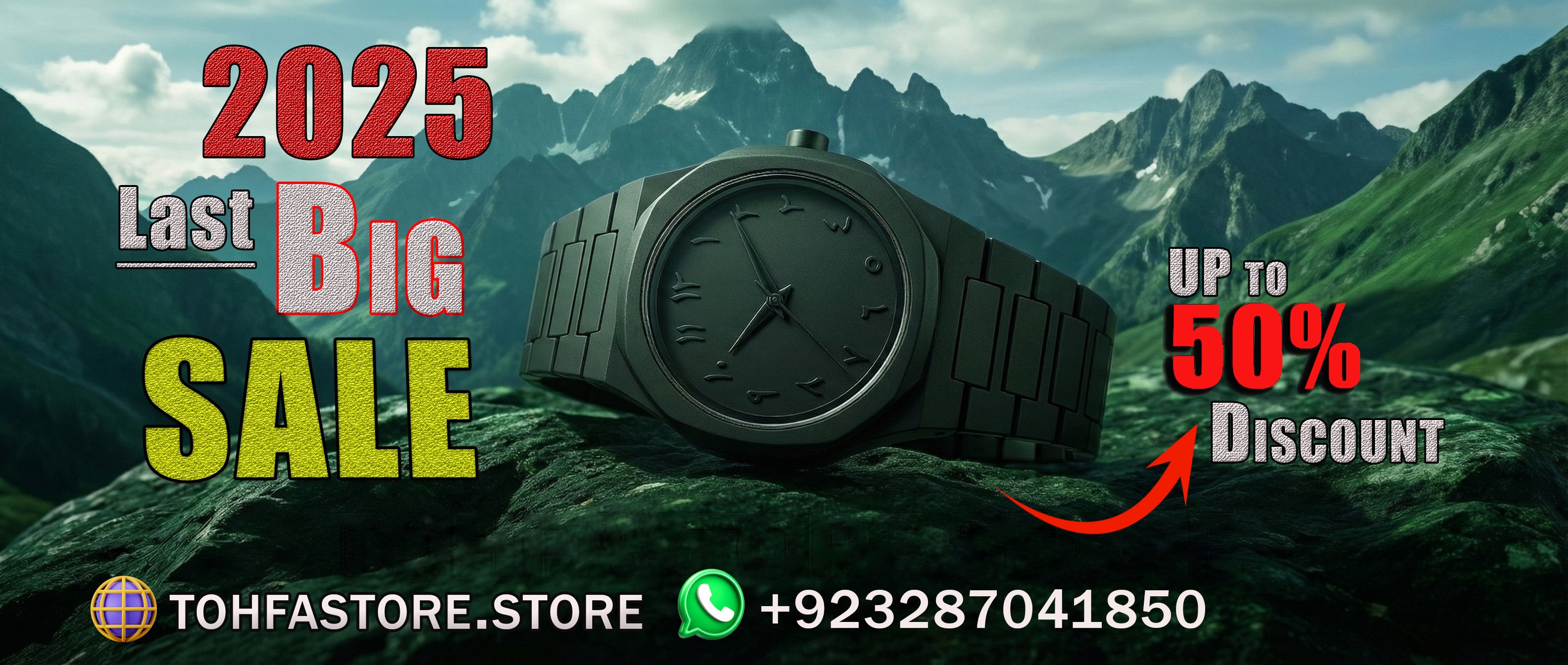 Arabic Aura Watch Black-Color For Men Stylish and 100% Orignal : Arabi Numerals and Fiber Chain